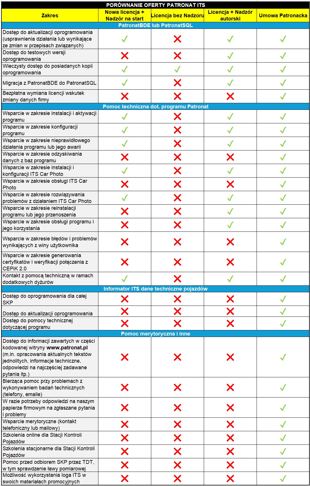 • Oferta Patronat ITS dla SKP - porównanie zakresu ofert